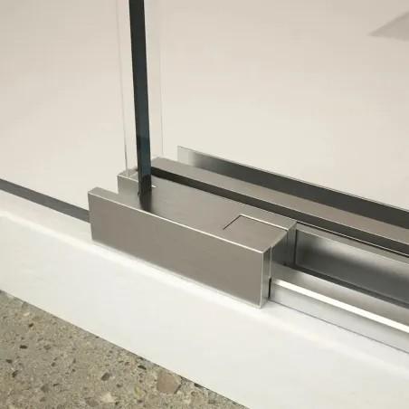 Mampara de ducha de 1 fijo + 2 hojas correderas sin guía inferior modelo MERIDA de Doccia Group le permite conseguir tener el máximo espacio de entrada, Mampara con un mini perfil base para garantizar su estanquidad y una mejor accesibilidad, sin perfilería entre los cristales consiguiendo una sensacional estética, amplitud en el baño y limpieza. Apertura y cierre con sistema de arrastre. MAXIMO ESPACIO DE ENTRADA.