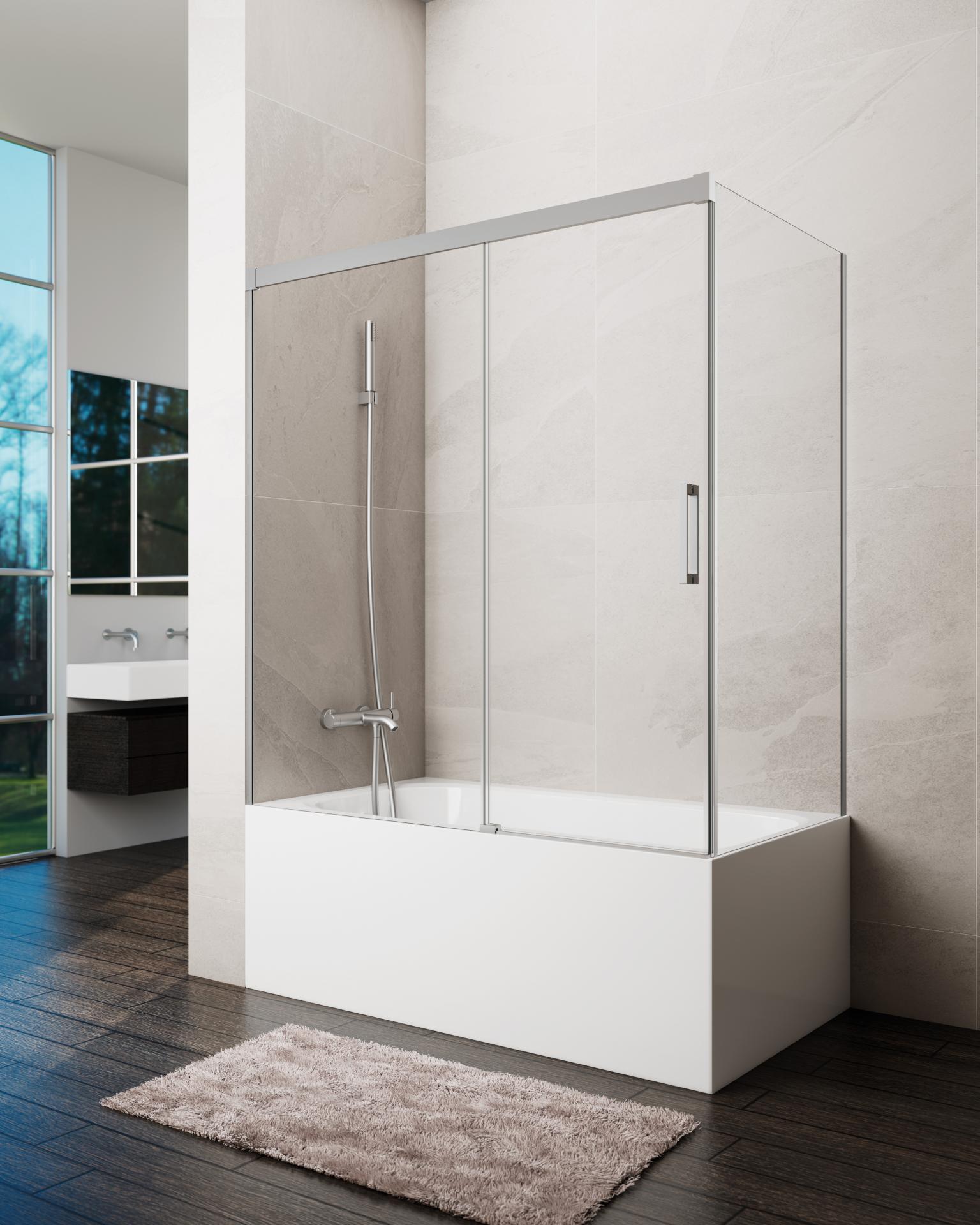 Mampara para bañera corredera sin guía inferior con lateral fijo.
