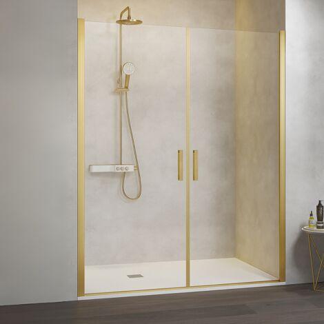 Mampara ducha NARDI NA501 2 puertas abatibles 180º en oro cepillado