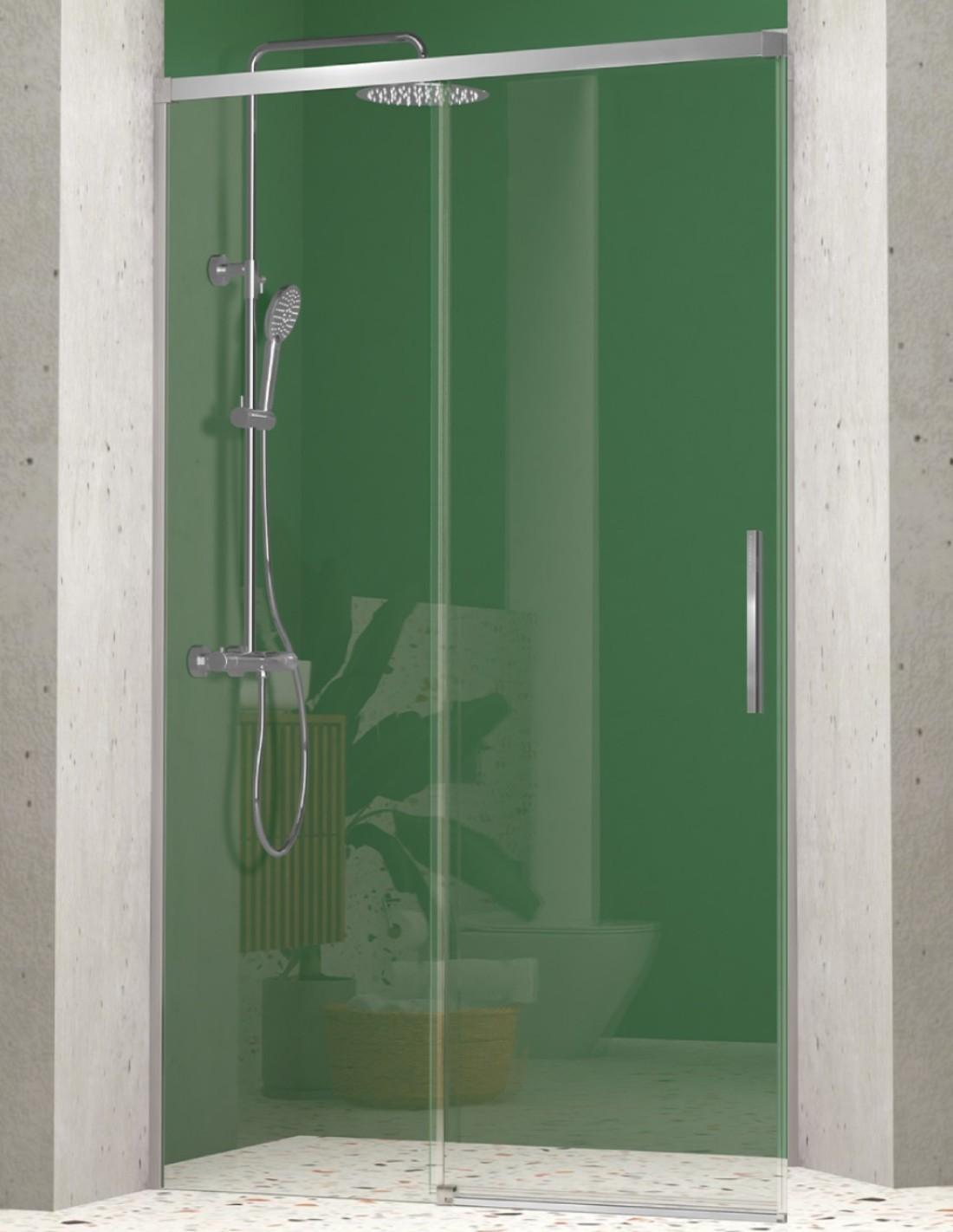 Mampara ducha MINIMALISTA frontal fijo + corredera sin guía inferior, perfecta mampara para baños pequeños, poca perfilería, fabricada con los mejores acabados al mejor precio. Nuevo tirador exclusivo extraplano, mampara de ducha disponible en plata brillo y negro mate. Sensacional oferta, mampara con precio asequible. La mejor opción para baños modernos..