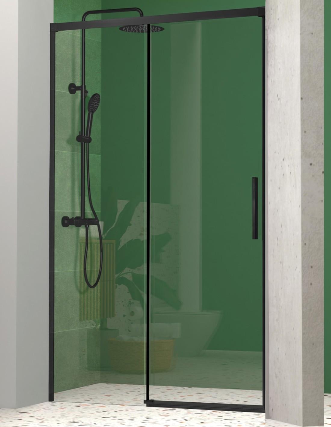Mampara ducha NICOLETA frontal fijo + corredera sin guía inferior, negro y plata OFERTA